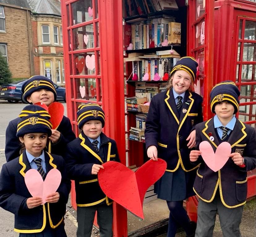 Following on from the success of our Christmas campaign with Banbury’s phone box library, teachers and pupils have turned Banbury’s phone box library in to a ‘hub of love’ by decorating it with love hearts and giving away home-made knitted hearts to those who visit Banbury’s phone box library on this special day.